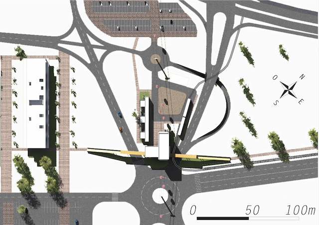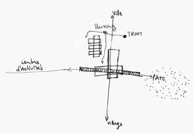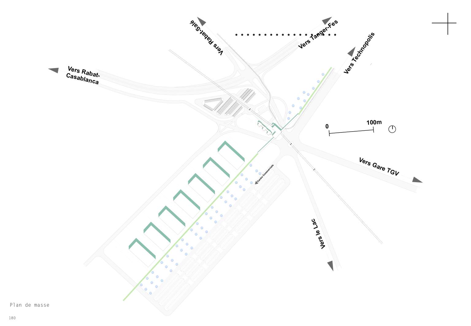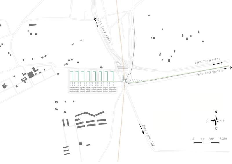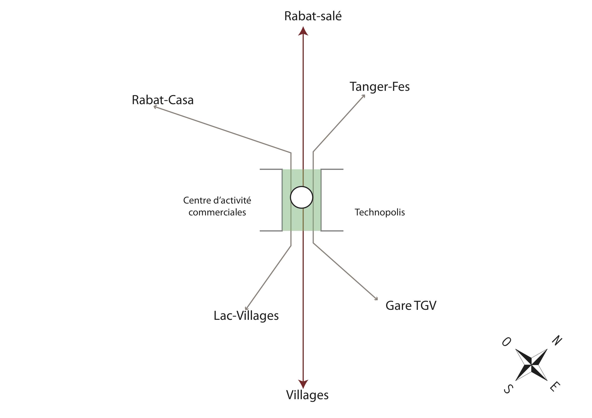 Le site choisi qui se trouve au cœur d’un flux de circulation, créant un pôle multimodal à l’échelle de la ville vient connecter technopolis, le centre de formation de foot-ball, les villages environnant.