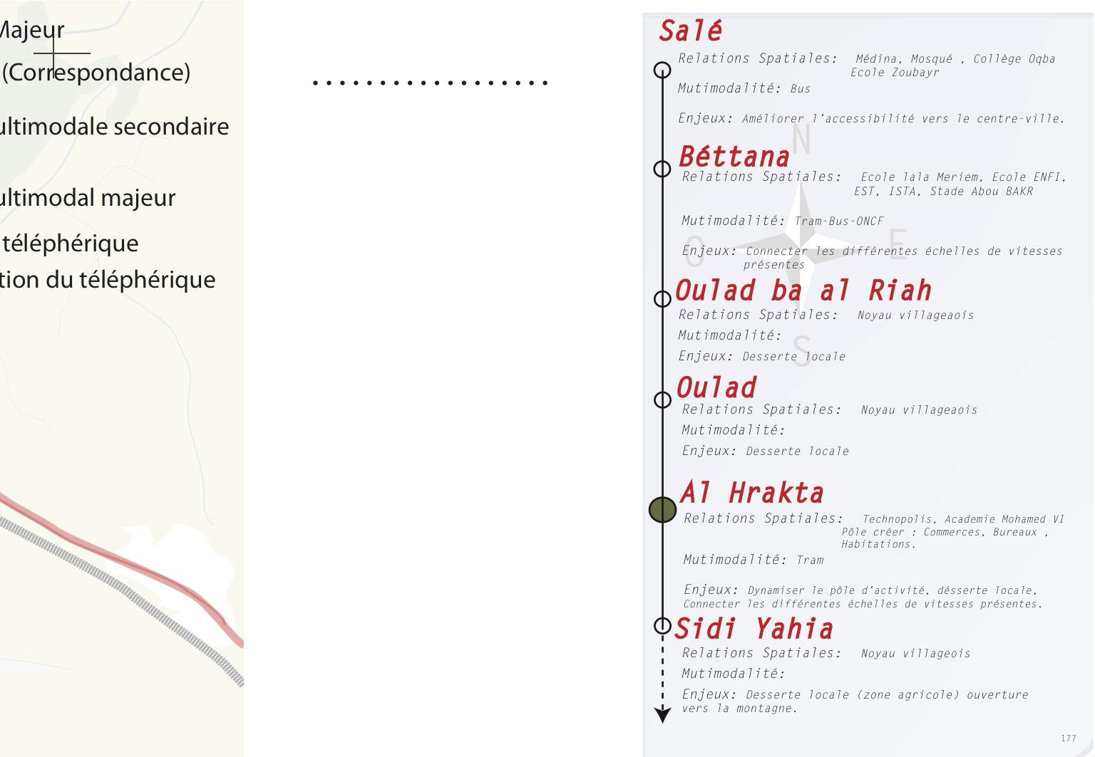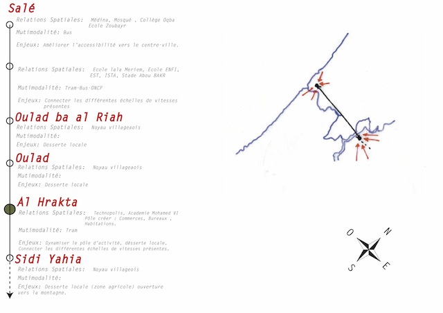 L’exemple de la station AL HRAKTA (un noeud au sein de plusieurs activités, et de différentes vitesses). Autres particularité de cette station est que le site accueille divers activités soit existantes (écoles principalement à proximités) ou à créer (zone d’activité commerciale, bureaux, Habitations) il s’agit donc aussi d’un lieu ou s’échange divers usages et fonctions.