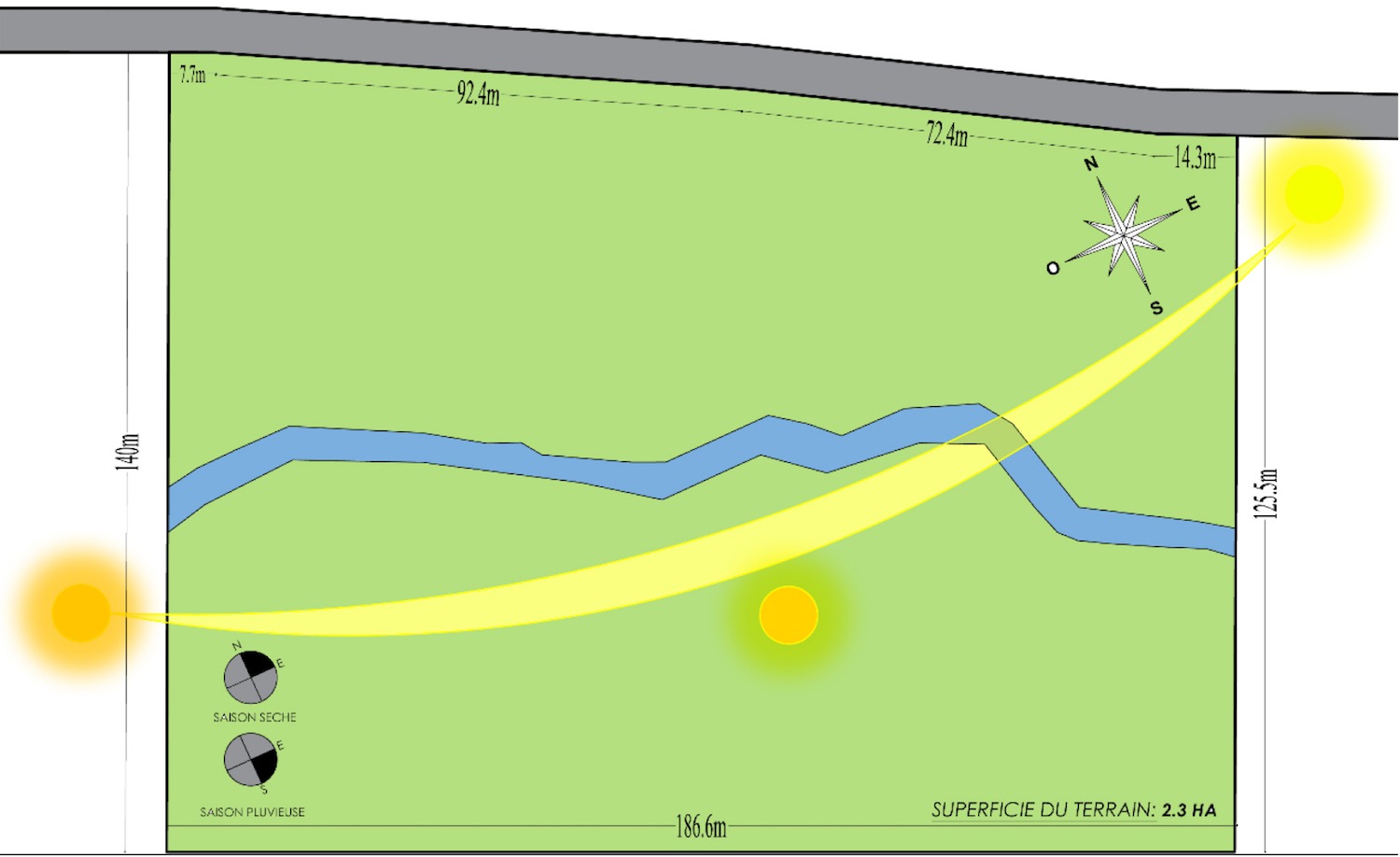 Superficie du terrain : 2.3 ha